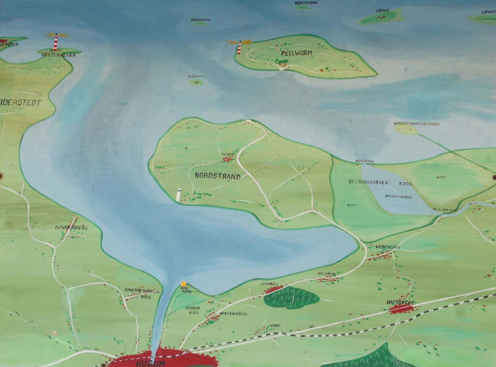 einige Halligen und die Halbinsel Nordstrand im Südwesten. |