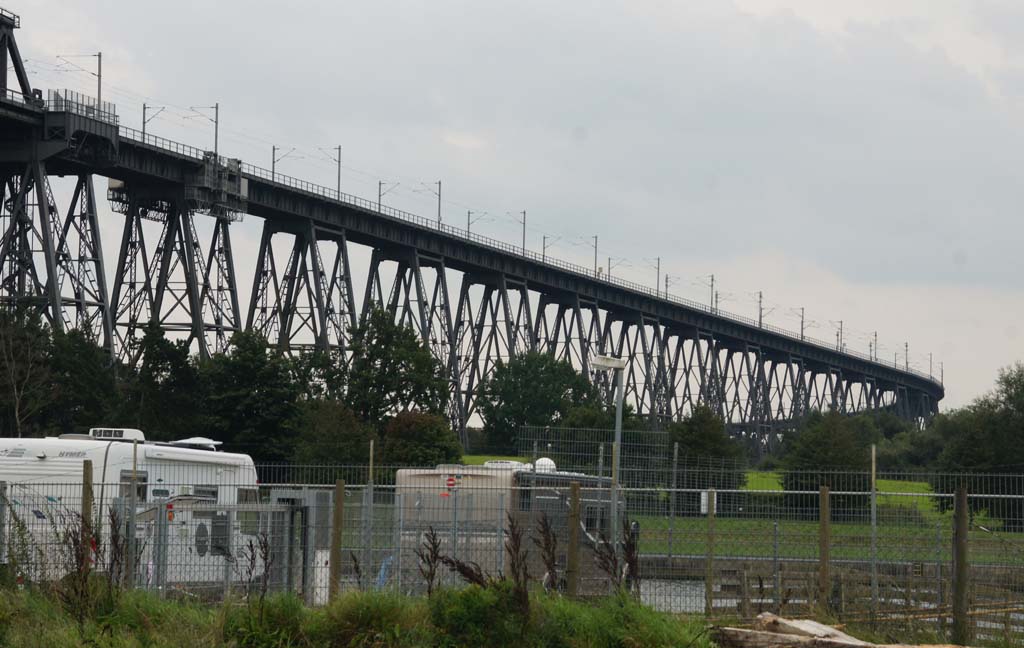 | Doch kurz nach der Ankunft in Rendsburg begann wieder dieser blöde Regen. Für den Zweibeiner hatte es gerade zuein paar Brückenfotos von einem suboptimalen Standort aus gereicht. Nach einem "Stellungswechsel" zu einem besseren Foto-Punkt hat es gerade noch zu einem kurzen Spaziergang am Nord-Ostsee-Kanal gereicht, bevor der stark zunehmende Regen den Abbruch des Rendsburg-Besuches generierte. Oh Hund eh, der Zweibeiner war ganz schön angefressen - 2x 75km für nichts... | ||||