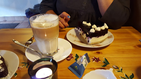 der regnerische Zweibeinerinnengeburtstag. Nachmittags in das Hofcafe