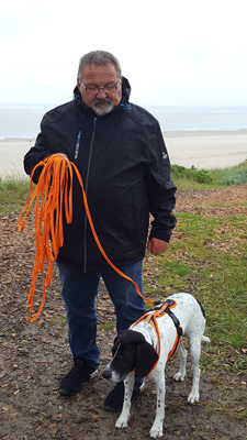 | Zweibeinige Begleiter hier urlaubender Hunde sollten sich etwas mit der Abruferei jagdlich geprägter Hunde auskennen. Wir Hunde sind ja hier nicht allein auf der dänischen Erdscheibe, sondern auch einige andere Tiere mit Fell oder Federn haben hier ihren Stammsitz. Darunter auch solche, denen wir Hunde gern mal "ein wenig hinterherschleichen" - also Hasen, Eichhörnchen aber auch Fasane und ähnliche Federtiere. Wenn die Zweibeiner das nicht wollen, müssen Sie uns das schon frühzeitig sagen - quasi bevor wir unsere Scheuklappen aktivieren. Das gelingt z.B., indem sie uns mit etwas Leckerem ablenken... | |||||