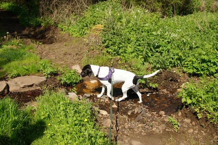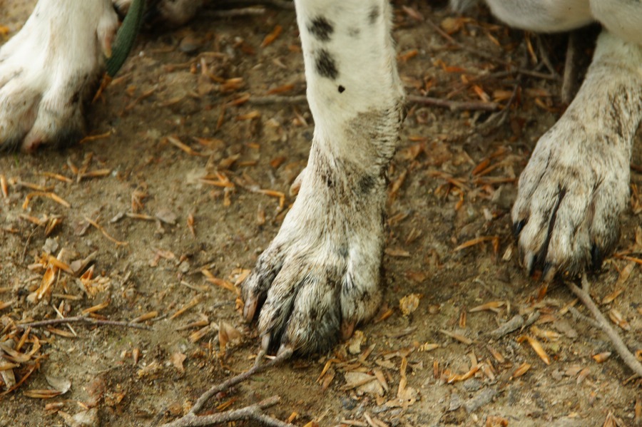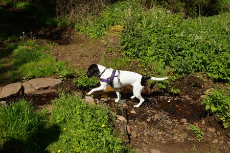 | Aber der Weg wurde noch unwegsamer, wir mussten über Geröll und einmal musste ich mit der Zweibeinerin pausieren, weil der Zweibeiner erstmal einen begehbaren Weiterweg erkunden musste. Als der gefunden war, führte die Weg über eine moorige Wiese (iex!!!) und eine Tierkoppel. Endlich war da dann ein fester Weg zurück nach Arlid... | |||