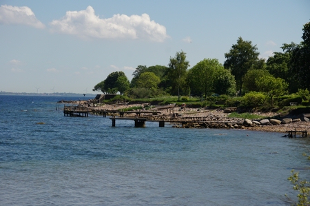 | Zur Vorgeschichte: Hier auf der Halbinsel gab es einen Zweibeiner, der seit 1980 von Schiffen angeschwemmtes Treibgut aufgesammelt hat und daraus am Strand ganz absonderliche Gebilde (Nimis und Arx), die aussehen wie Gerüste vom Bau, zusammengebaut hat. Die "Kunstwerke" waren eine Zeit lang verboten und werden heute noch sehr kontrovers betrachtet. Seitens der Kommunal- und Regionalpolitik wird die Sache wohl nur wenig gefördert und entsprechend sparsam wird das Projekt "Nimis und Arx" als solches beworben. Und entsprechend zurückhaltend sind auch die Wege dorthin ausgebaut und beschildert. Der Zweibeiner meinte nach intensivem Kartenstudium, vom Nachbarort Arild einen für uns geeigneten Wanderweg gefunden zu haben... Wohl in vertrauensvoller Unwissenheit haben ich und die Zweibeinerin der vom Zweibeiner vorgeschlagenen touristischen Maßnahme zugestimmt... | |||