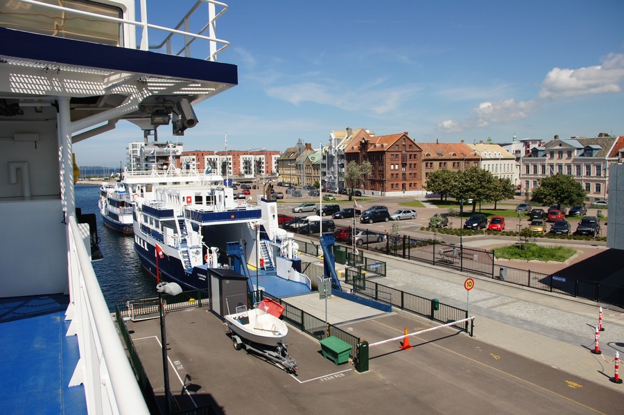 Über Helsingborg führt einer der 3 Wege aus Deutschland nach Südschweden: Von Fehmarn (nach Rondby) oder Rostock (nach Gedser) mit der Fähre nach Dänemark. Und durch Dänemark per Straße nach Helsingor und von dort mittels Scandline-Fähre nach Hälsingborg nach Schweden. (Die 2 anderen Wege sind die von uns genutzte Fährüberfahrt von Sassnitz nach Trelleborg und der Weg über die Öhresundbrücke, bei dem die Fährüberfahrt Helsingsor - Helsingborg entfällt.) |