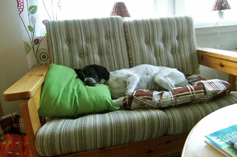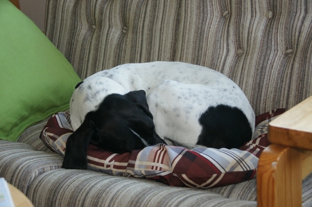 | Am Abend habe ich mich der intensiven hündischen Erholung hingegeben - schließlich war es mir wichtig, zu meinem Geburtstag am folgenden Tag auch 100-prozentig fit zu sein... | |||
