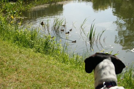 | Die Enten - selbst die im Erwachsenenalter und bereits mit eigenen Nachwuchs Befassten - waren sich offenbar nicht im Klaren darüber, dass Pointer-Hunde ware Künstler der Geflügeljagd sind. Leider habe ich diese meine künstlerische Virtualität auf ausdrücklichen Befehl meiner Zweibeiner nicht unter Beweis stellen dürfen... | |||