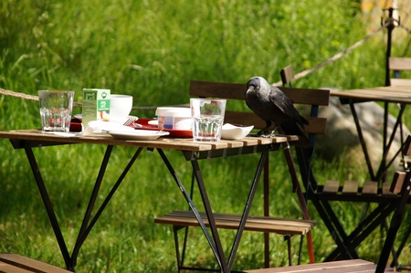 | Auffällig und sehr unangepasst war das völlig charakterlose Verhalten der in dem Gaststätten-Freisitz anwesenden Rabenvögel: | |||