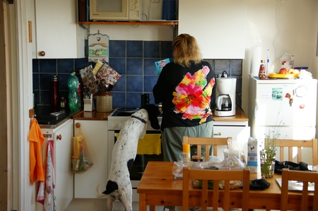 mit etwas hündisch Interessantem die Terrassentür passieren
