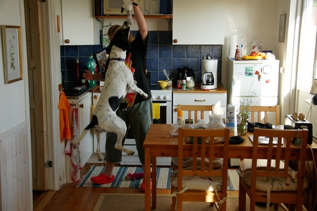 Also die Zweibeinerin macht das schon ziemlich gut... |