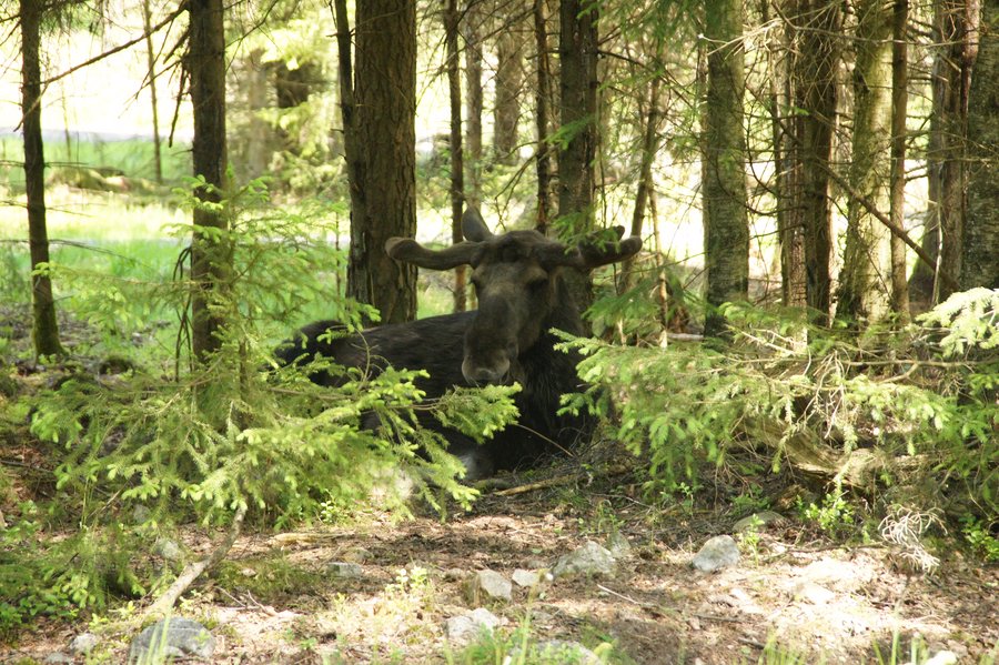 | Dann war da ein Tag, nach dem ich nun von mir behaupten kann, dass ich mich mit Schweden vollumfänglich auskenne - also gewisser Maßen hündischer Sachverständiger für Schweden bin: Ich habe richtige Elche gesehen. | |||