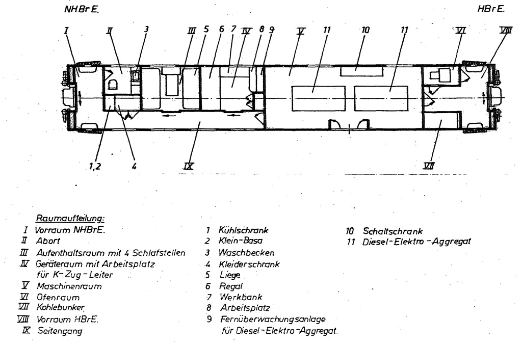 Ergänzt wurden die 10 Einheiten jeweils durch einen Energieversorgungswagen, der beim Einsatz als Stammeinheit auch als Unterkunft des bahntechnischen Personals diente. | |||