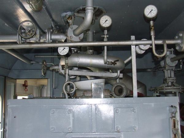 entwässert und entleert werden. Sowohl das Dampf-/Kondensatsystem und auch das Frischwassersystem sind sehr aufwendige und vielteilige Systeme mit vielen kleinen Baugruppen und einer Vielzahl von einzelnen Funktionalitäten. Gemessen an dem automatisierungstechnischen Aufwand, den man in der heutigen Zeit für solche Systeme treiben würde, fällt auf, dass "Automatisierung" überhaupt nicht stattfindet und alle Komponenten per Handeingriff gesteuert bzw. geregelt werden mussten - nach dem Motto "was nicht vorhanden ist, kann auch nicht ausfallen". Was freilich nicht ausfallen durfte, war der Mensch, der die Systeme bedienen musste. Ein Dampferzeuger ohne automatisch wirkende Wassermangelsicherung ist selbst bei einem Niederdruck-Dampfkessel, der aufgrund seiner lange zurückliegenden Inbetriebnahmeprüfung Bestandsschutz genießen würde, nicht mehr denkbar. Aus genau diesem Grund wäre die Wiedererlangung einer Betriebsgenehmigung für einen solchen Dampferzeuge ohne Nachrüstung eines Mindestmaßes an Sicherheitstechnik völlig undenkbar. |