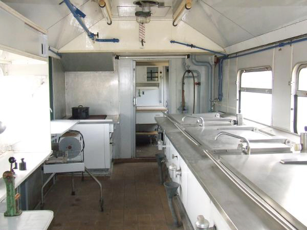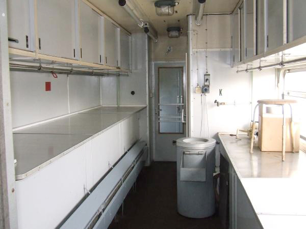 Einstiegsraum Nichthandbremsende Kesselraum mit Niederdruckdampfkessel und Kohlebunker Spülraum Kochraum mit 3 Niederdruck-Dampfkochkesseln und 1 elektrischen Kochherd Gemüseputzraum mit Anrichte und Kühlraum und Kühlraum Einstiegsraum Handbremsende mit Kälteverdichter und Schaltschrank (Ausstieg nur links). Küchenwagen besitzen keine Toilette. |