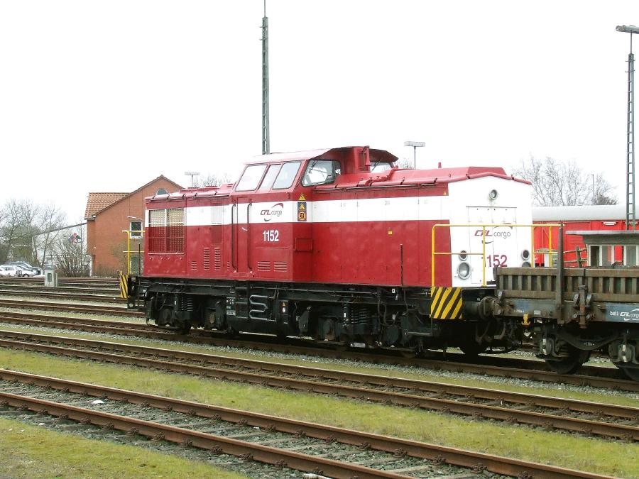 01.04.2009. Niebüll. Die CFL-Cargo 1152 (ex 112 430) steht vor einem güterzug in Richtung Husum, Heide...