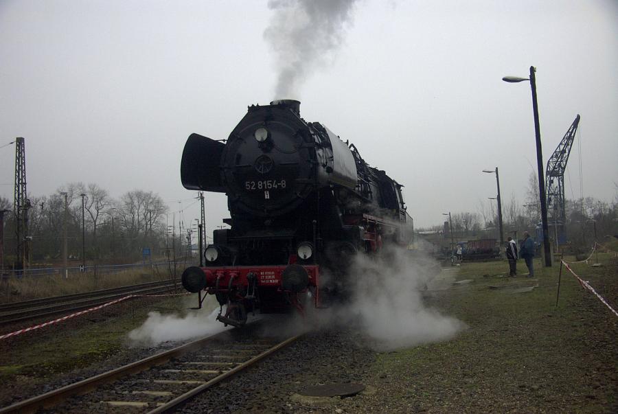 Führerstandsmitfahrten auf 52 8154. Links im Bild die Gleise Richtung Zeitz.