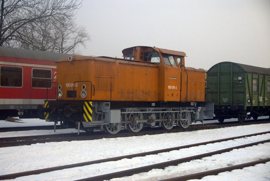 05.03.2005. 105 015 gehört den Ostsächsischen Eisenbahnfreunden in Löbau und war an diesem Abend gemeinsam mit 52 8080 Gast in Plagwitz.