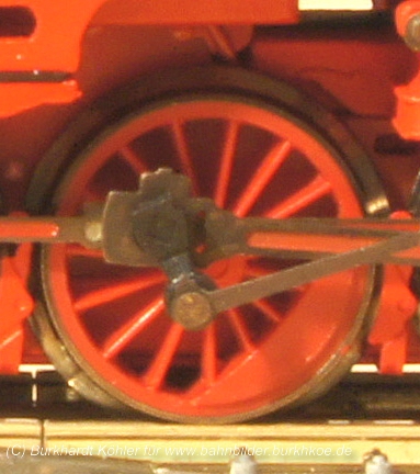 Die Steuerung der beiden Vergleichsmodelle ist so unterschiedlich wie es nur geht... Aus Plast am Tillig-Modell und die geätzte Beckmann-Steuerung. Und beide Systeme haben entsprechend der Art der Produktion ihre Daseinsberechtigung. Die Feinheit der Teile an der 38 birgt auch die Gefahr der „plastischen Verformung“... | ||