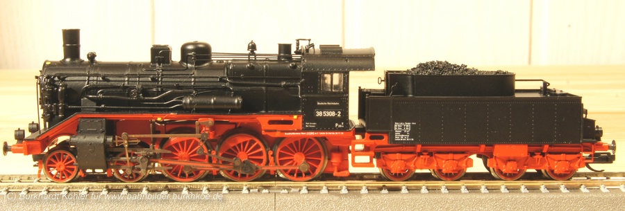 ehe das Modell in den freien Verkauf kam. Mit der 38 234 (Rbd Dresden, BW Freiberg/Sa.) kam 2010 noch ein EP-III-Modell dazu – dieses Mal mit sächsischer Beheimatung. Anfang Oktober 2010 folgte schließlich ein EP-IV-Modell mit der 38 5308. |