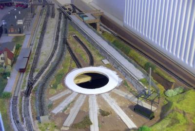 entfernt. Im Bild rechts ist die Drehscheibengrube probeweise eingesetzt.  |