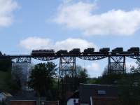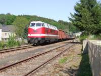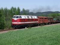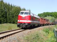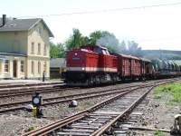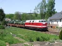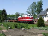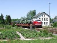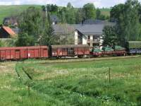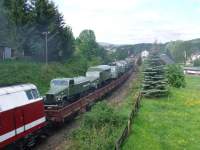 einem stilechten NVA-Militärgüterzug auf der Strecke Schwarzenberg